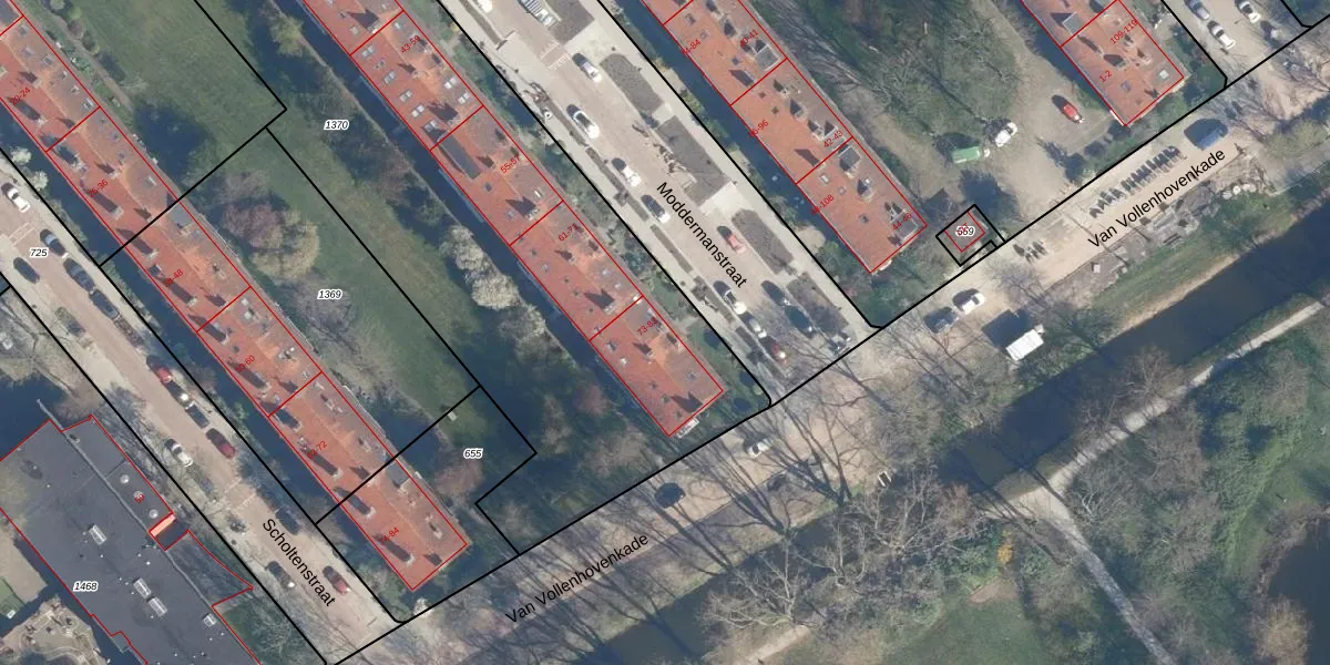 Moddermanstraat 73 is gelegen op kadastraal perceel LDN01Q1370. Deze kadastrale aanduiding is uniek en wordt gebruikt door het Kadaster om eigendomsrechten en andere zakelijke rechten vast te leggen. Het perceel maakt onderdeel uit van de kadastrale gemeente Leiden.