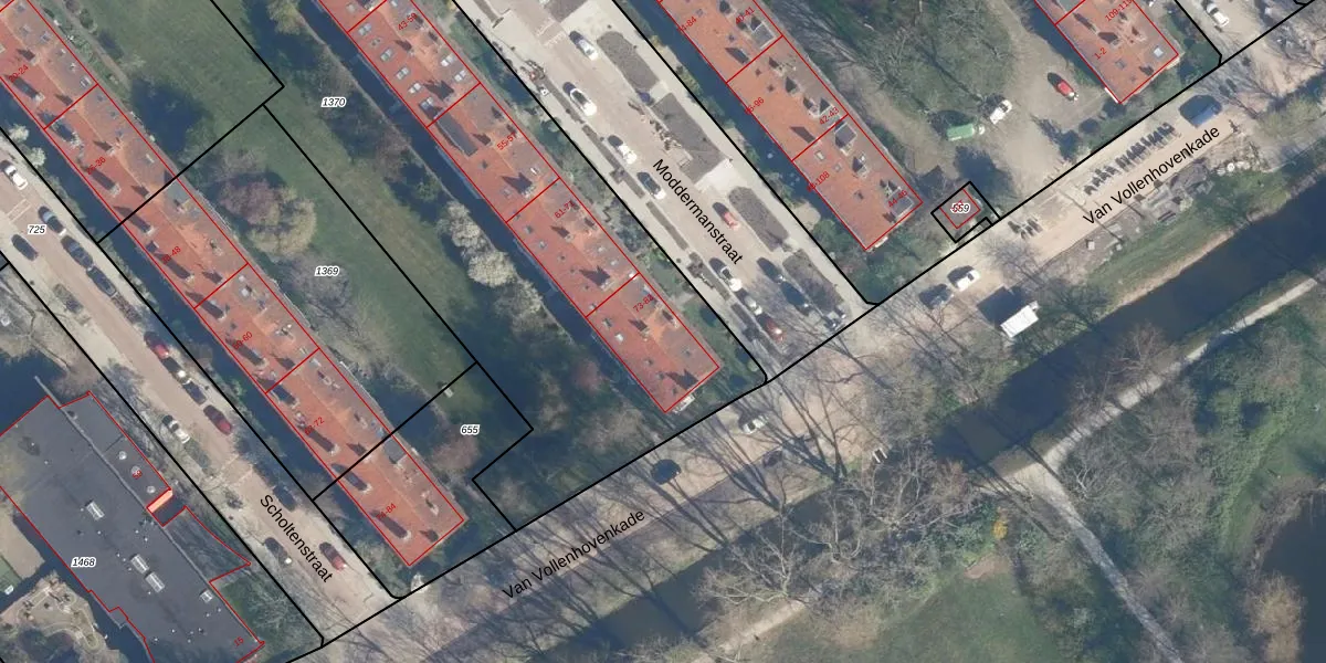 Moddermanstraat 81 is gelegen op kadastraal perceel LDN01Q1370. Deze kadastrale aanduiding is uniek en wordt gebruikt door het Kadaster om eigendomsrechten en andere zakelijke rechten vast te leggen. Het perceel maakt onderdeel uit van de kadastrale gemeente Leiden.