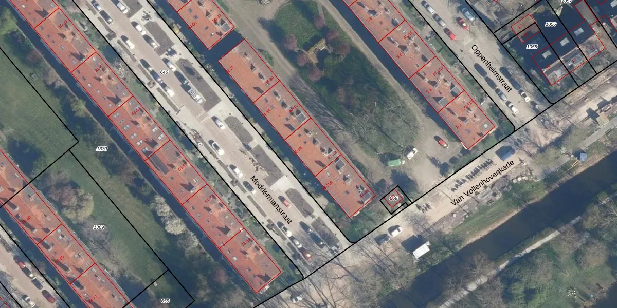 Moddermanstraat 94 is gelegen op kadastraal perceel LDN01Q558. Deze kadastrale aanduiding is uniek en wordt gebruikt door het Kadaster om eigendomsrechten en andere zakelijke rechten vast te leggen. Het perceel maakt onderdeel uit van de kadastrale gemeente Leiden.