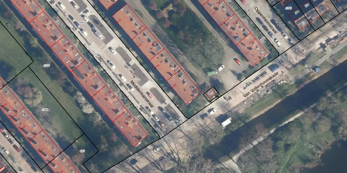 Moddermanstraat 98 is gelegen op kadastraal perceel LDN01Q558. Deze kadastrale aanduiding is uniek en wordt gebruikt door het Kadaster om eigendomsrechten en andere zakelijke rechten vast te leggen. Het perceel maakt onderdeel uit van de kadastrale gemeente Leiden.