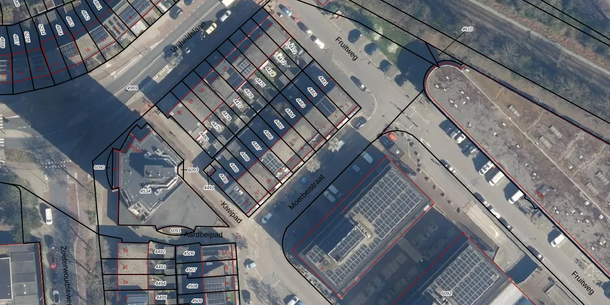 Het adres ligt op het perceel LDN01-O-4485, dat zich in de kadastrale gemeente Leiden bevindt. De gemiddelde perceelgrootte in Leiden is 703,94 m². Dit perceel is kleiner: de perceeloppervlakte bedraagt 113 m². Het kleinste perceel in de kadastrale gemeente is 0 m² groot. De grootste perceeloppervlakte is 51,8 ha. Dit is het enige adres dat aanwezig is op het perceel. De huidige grenzen van het perceel zijn digitaal in de Basisregistratie Kadaster (BRK) geregistreerd op 28-08-2003.