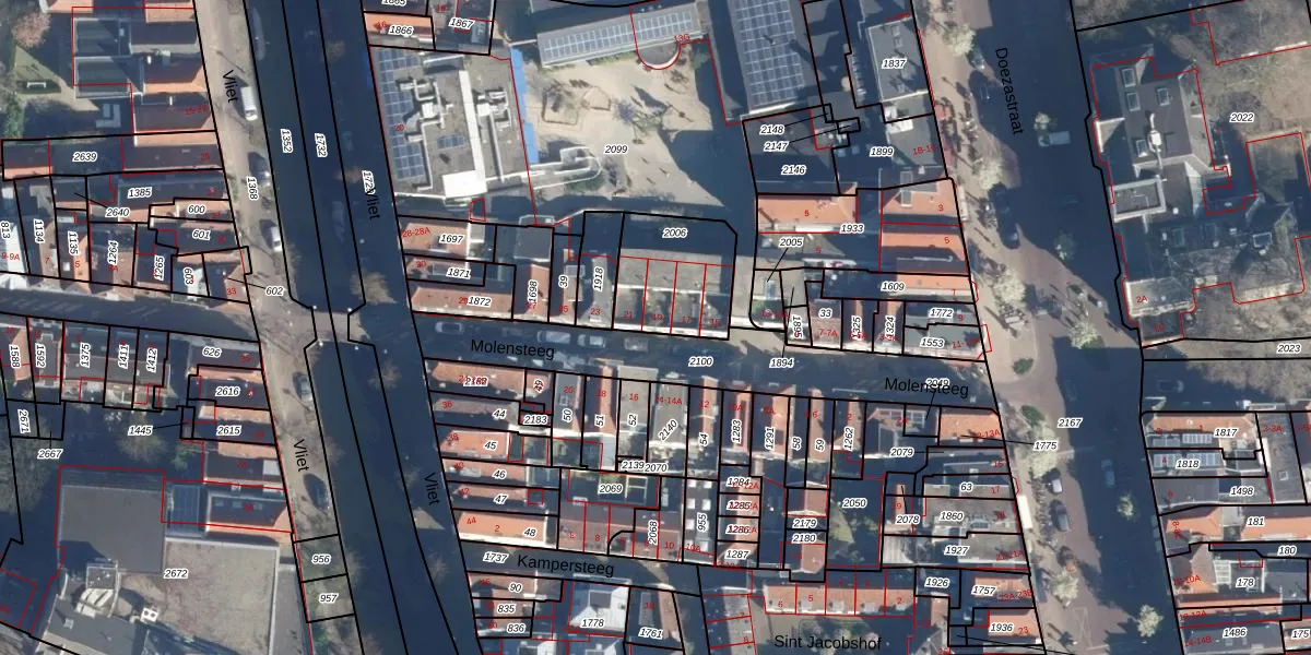 Het perceel waarop Molensteeg 19 staat heeft een oppervlakte van 310 m². Dit is een groot perceel. De perceeloppervlakte wordt geregistreerd door het Kadaster. Gedetailleerde informatie over de maten van dit perceel kunt u vinden in het rapport Kadastrale kaart met maatvoering van Molensteeg 19.