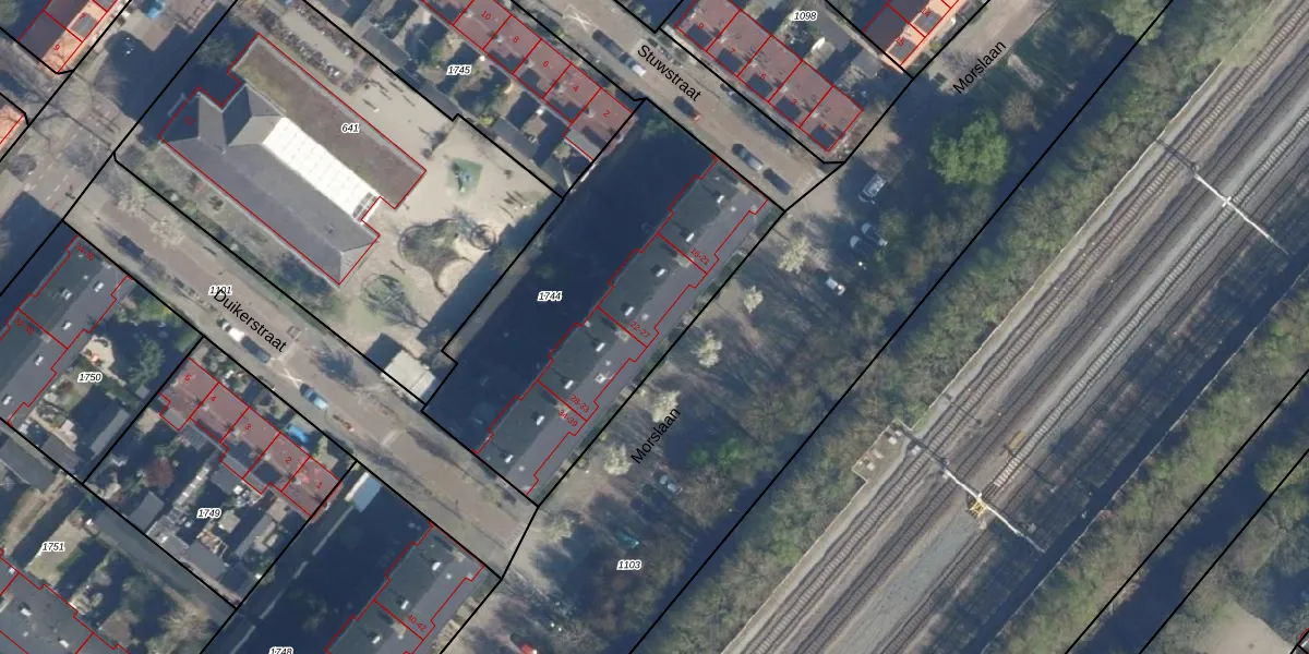 Het perceel waarop Morslaan 25 staat heeft een oppervlakte van 1575 m². Dit is een zeer groot perceel. De perceeloppervlakte wordt geregistreerd door het Kadaster. Gedetailleerde informatie over de maten van dit perceel kunt u vinden in het rapport Kadastrale kaart met maatvoering van Morslaan 25.