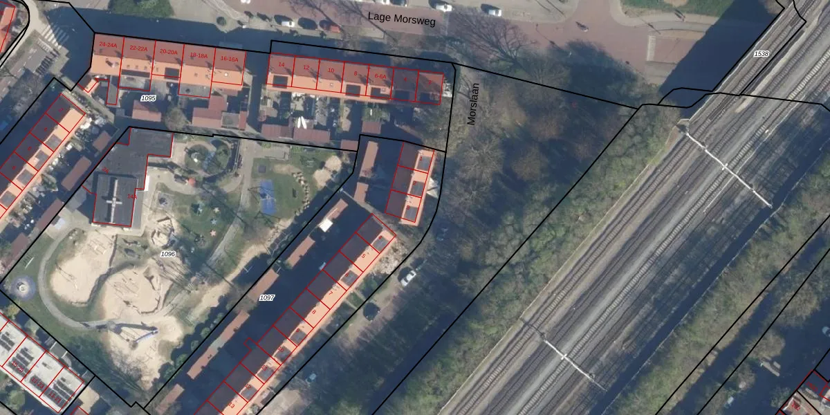 Het perceel waarop Morslaan 3 staat heeft een oppervlakte van 1995 m². Dit is een zeer groot perceel. De perceeloppervlakte wordt geregistreerd door het Kadaster. Gedetailleerde informatie over de maten van dit perceel kunt u vinden in het rapport Kadastrale kaart met maatvoering van Morslaan 3.