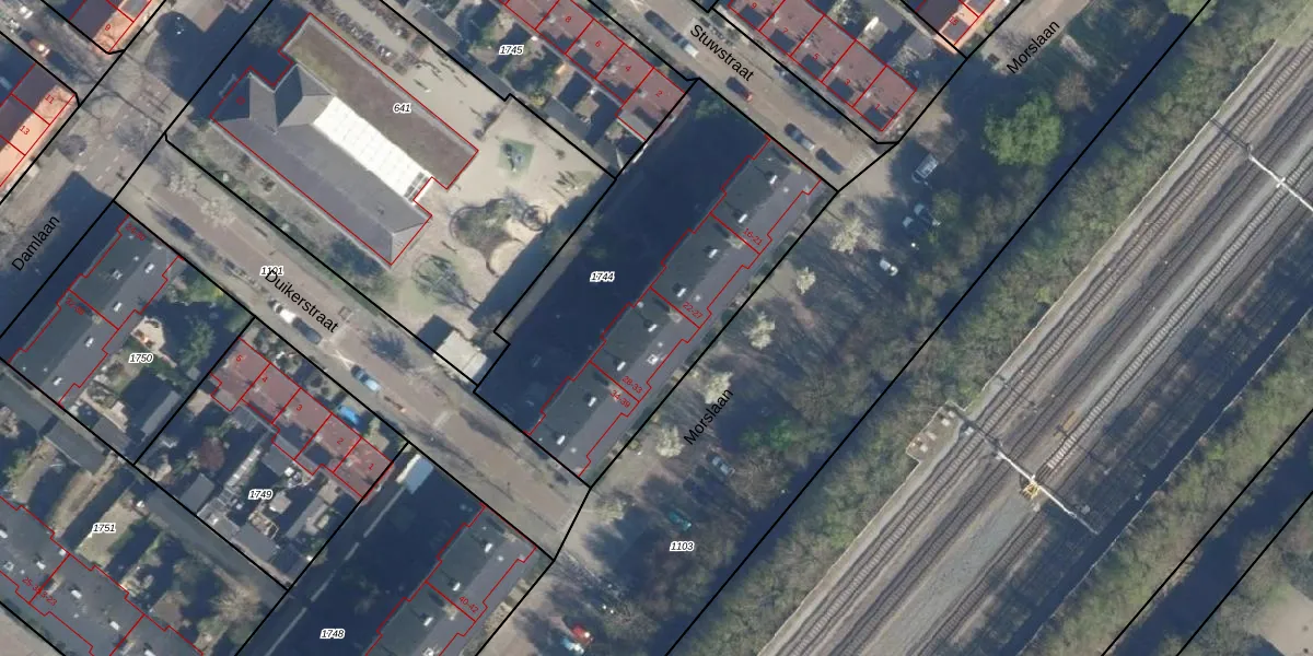 Het perceel waarop Morslaan 30 staat heeft een oppervlakte van 1575 m². Dit is een zeer groot perceel. De perceeloppervlakte wordt geregistreerd door het Kadaster. Gedetailleerde informatie over de maten van dit perceel kunt u vinden in het rapport Kadastrale kaart met maatvoering van Morslaan 30.