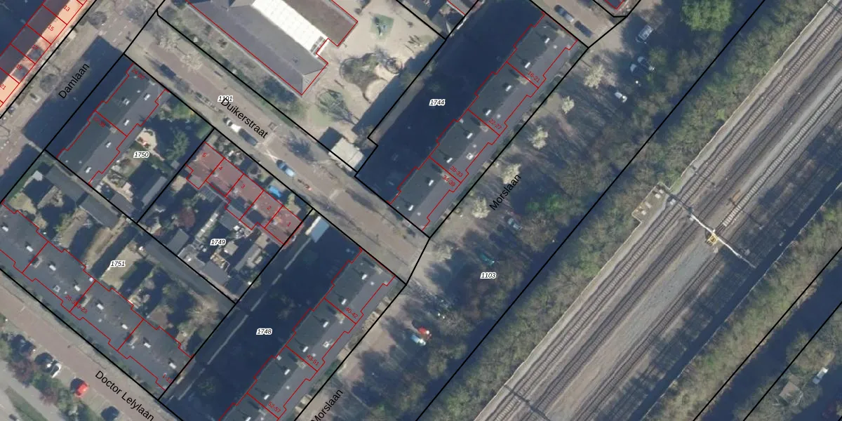 Het perceel waarop Morslaan 38 staat heeft een oppervlakte van 1575 m². Dit is een zeer groot perceel. De perceeloppervlakte wordt geregistreerd door het Kadaster. Gedetailleerde informatie over de maten van dit perceel kunt u vinden in het rapport Kadastrale kaart met maatvoering van Morslaan 38.