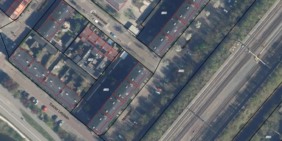 Het perceel waarop Morslaan 42 staat heeft een oppervlakte van 1676 m². Dit is een zeer groot perceel. De perceeloppervlakte wordt geregistreerd door het Kadaster. Gedetailleerde informatie over de maten van dit perceel kunt u vinden in het rapport Kadastrale kaart met maatvoering van Morslaan 42.