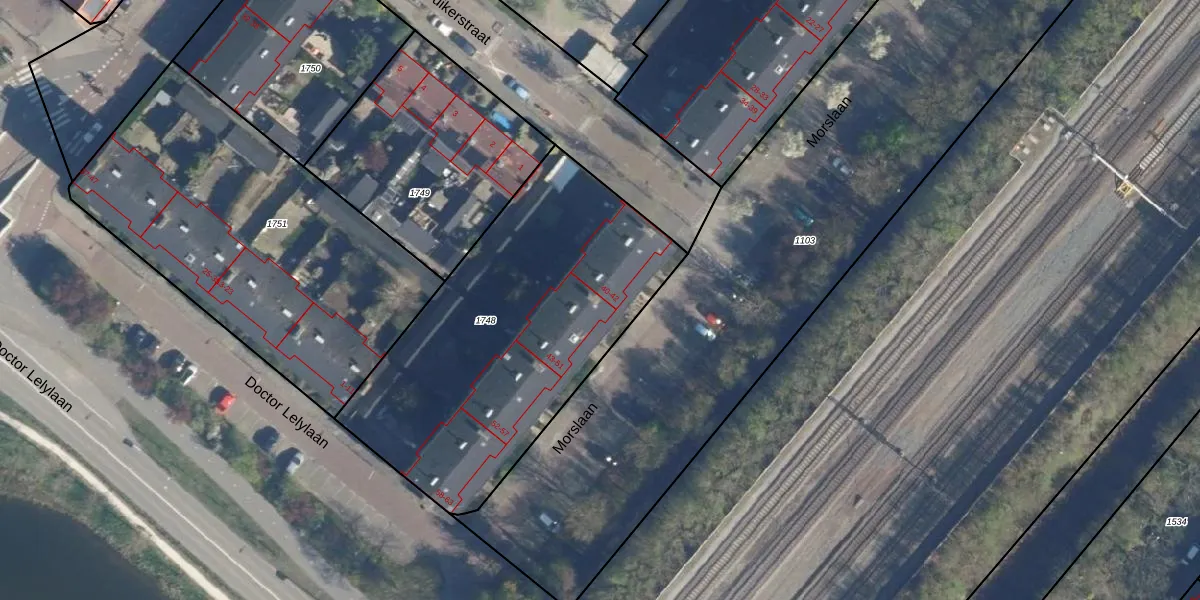 Het perceel waarop Morslaan 44 staat heeft een oppervlakte van 1676 m². Dit is een zeer groot perceel. De perceeloppervlakte wordt geregistreerd door het Kadaster. Gedetailleerde informatie over de maten van dit perceel kunt u vinden in het rapport Kadastrale kaart met maatvoering van Morslaan 44.