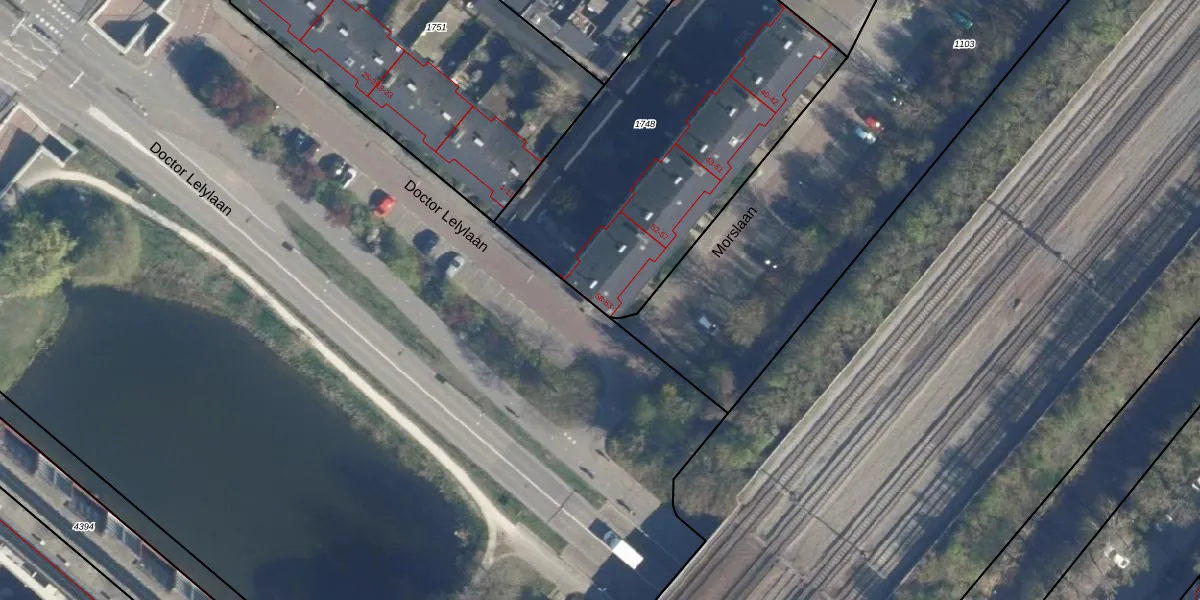 Het perceel waarop Morslaan 62 staat heeft een oppervlakte van 1676 m². Dit is een zeer groot perceel. De perceeloppervlakte wordt geregistreerd door het Kadaster. Gedetailleerde informatie over de maten van dit perceel kunt u vinden in het rapport Kadastrale kaart met maatvoering van Morslaan 62.