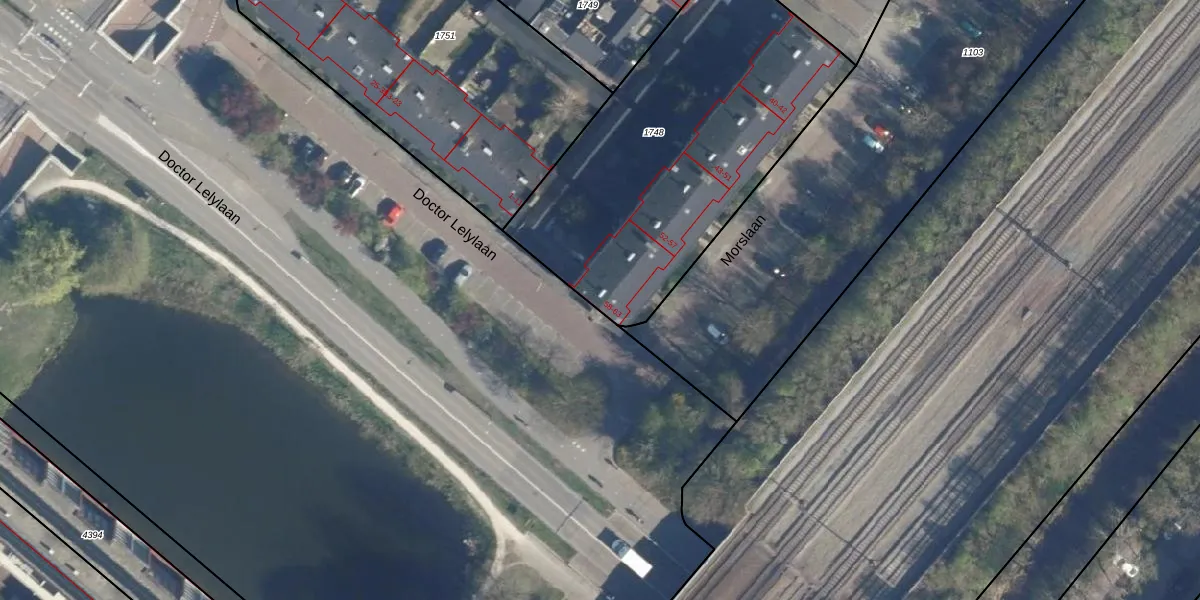 Het perceel waarop Morslaan 63 staat heeft een oppervlakte van 1676 m². Dit is een zeer groot perceel. De perceeloppervlakte wordt geregistreerd door het Kadaster. Gedetailleerde informatie over de maten van dit perceel kunt u vinden in het rapport Kadastrale kaart met maatvoering van Morslaan 63.