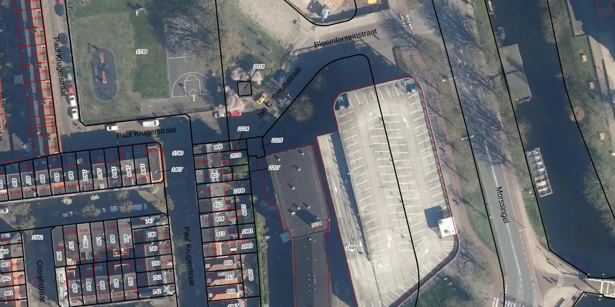 Het adres ligt op het perceel LDN01-L-1949, dat zich in de kadastrale gemeente Leiden bevindt. De oppervlakte van het perceel is 4721 m². Dat is groter dan gemiddeld in Leiden, waar de gemiddelde perceeloppervlakte op 703,94 m² ligt. De grootste perceeloppervlakte in de kadastrale gemeente is 51,8 ha. De kleinste oppervlakte bedraagt 0 m². Op het perceel zijn 39 adressen aanwezig. De laatste wijziging in het de Basisregistratie Kadaster (BRK) was op 22-06-2021.