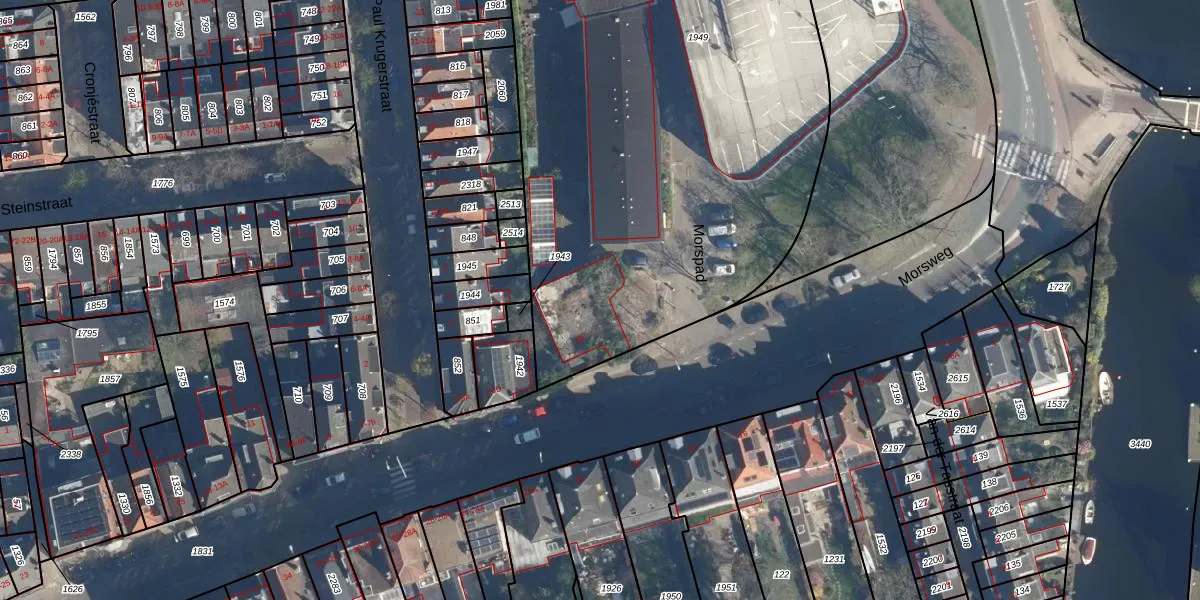 Het perceel waarop Morsweg 1-B staat heeft een oppervlakte van 4721 m². Dit is een zeer groot perceel. De perceeloppervlakte wordt geregistreerd door het Kadaster. Gedetailleerde informatie over de maten van dit perceel kunt u vinden in het rapport Kadastrale kaart met maatvoering van Morsweg 1-B.