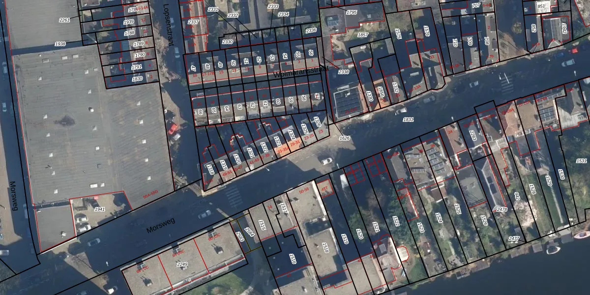 Het perceel waarop Morsweg 31 staat heeft een oppervlakte van 64 m². Dit is een klein perceel. De perceeloppervlakte wordt geregistreerd door het Kadaster. Gedetailleerde informatie over de maten van dit perceel kunt u vinden in het rapport Kadastrale kaart met maatvoering van Morsweg 31.
