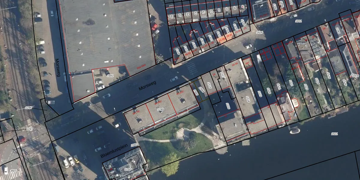 Het perceel waarop Morsweg 60 staat heeft een oppervlakte van 615 m². Dit is een groot perceel. De perceeloppervlakte wordt geregistreerd door het Kadaster. Gedetailleerde informatie over de maten van dit perceel kunt u vinden in het rapport Kadastrale kaart met maatvoering van Morsweg 60.