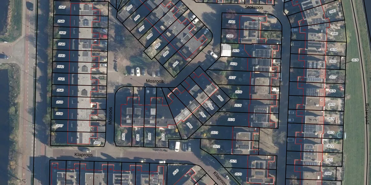 Mosroos 11 is gelegen op kadastraal perceel LDN01S2567. Deze kadastrale aanduiding is uniek en wordt gebruikt door het Kadaster om eigendomsrechten en andere zakelijke rechten vast te leggen. Het perceel maakt onderdeel uit van de kadastrale gemeente Leiden.