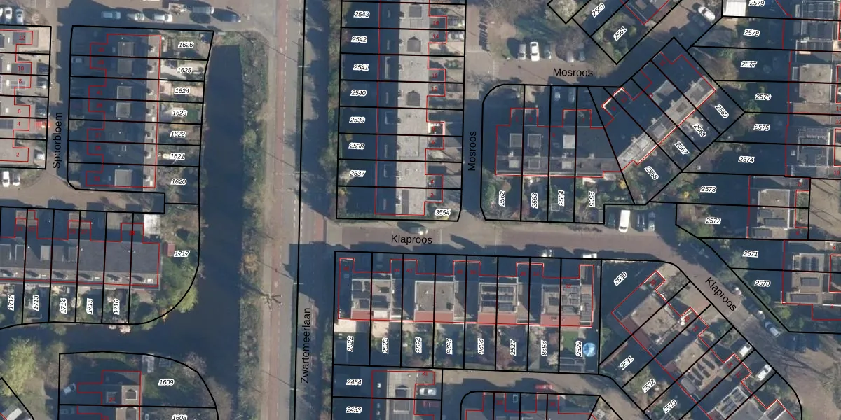 Gebruik de zoekbalk of klik op een perceel voor informatie over de adressen binnen dit perceel.