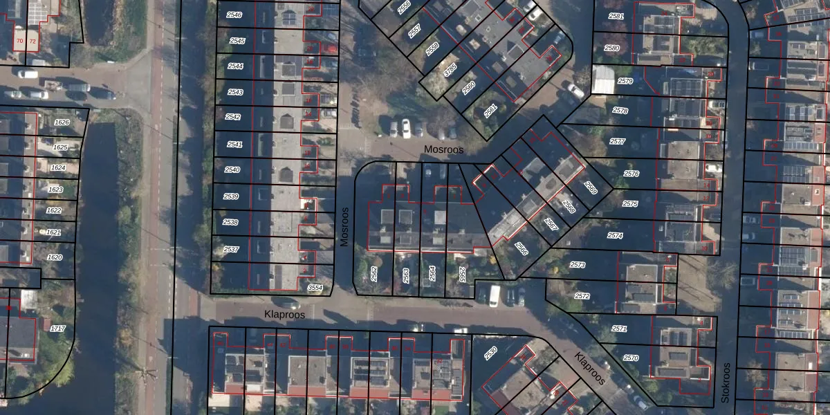 Mosroos 3 is gelegen op kadastraal perceel LDN01S2563. Deze kadastrale aanduiding is uniek en wordt gebruikt door het Kadaster om eigendomsrechten en andere zakelijke rechten vast te leggen. Het perceel maakt onderdeel uit van de kadastrale gemeente Leiden.