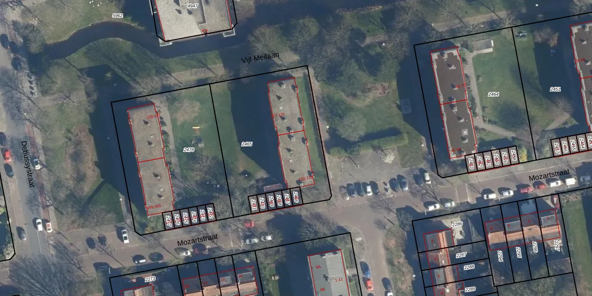 Mozartstraat 113 is gelegen op kadastraal perceel LDN01O2465. Deze kadastrale aanduiding is uniek en wordt gebruikt door het Kadaster om eigendomsrechten en andere zakelijke rechten vast te leggen. Het perceel maakt onderdeel uit van de kadastrale gemeente Leiden.
