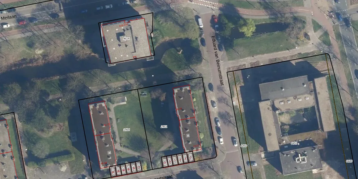 Het perceel waarop het adres ligt is LDN01-O-2451. De afkorting 'LDN01' staat voor kadastrale gemeente Leiden. Het perceel is met 1590 m² relatief groot. Het gemiddelde ligt in de kadastrale gemeente Leiden op 703,94 m². Het grootste perceel in de kadastrale gemeente is 51,8 ha. Het kleinste perceel heeft een oppervlakte van 0 m². Op het perceel liggen in totaal 16 adressen. De laatste wijziging in het de Basisregistratie Kadaster (BRK) was op 07-12-2007.