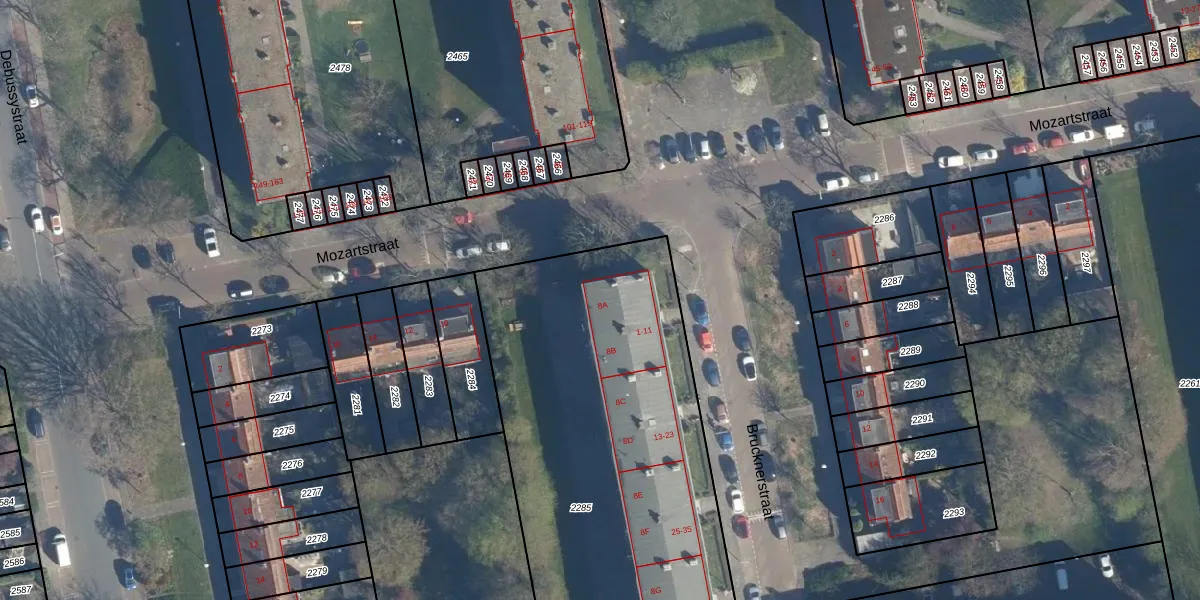 Mozartstraat 8-A is gelegen op kadastraal perceel LDN01O2285. Deze kadastrale aanduiding is uniek en wordt gebruikt door het Kadaster om eigendomsrechten en andere zakelijke rechten vast te leggen. Het perceel maakt onderdeel uit van de kadastrale gemeente Leiden.