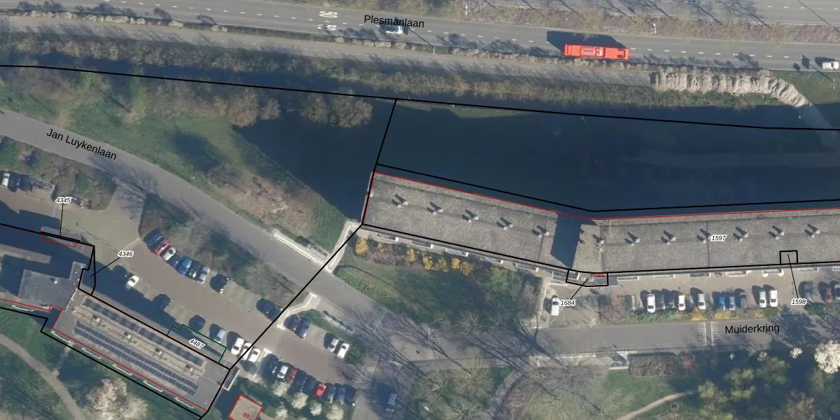 Het perceel waarop het adres ligt is LDN01-R-1597. De afkorting 'LDN01' staat voor kadastrale gemeente Leiden. Het perceel is met 3035 m² relatief groot. Het gemiddelde ligt in de kadastrale gemeente Leiden op 703,94 m². Het grootste perceel in de kadastrale gemeente is 51,8 ha. Het kleinste perceel heeft een oppervlakte van 0 m². Op het perceel liggen in totaal 176 adressen. De huidige grenzen van het perceel zijn digitaal in de Basisregistratie Kadaster (BRK) geregistreerd op 30-07-2012.