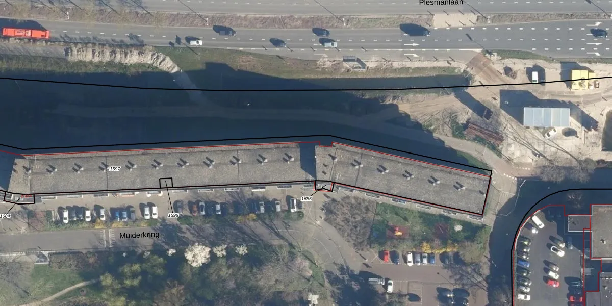 Het perceel waarop het adres ligt is LDN01-R-1597. De afkorting 'LDN01' staat voor kadastrale gemeente Leiden. Het perceel is met 3035 m² relatief groot. Het gemiddelde ligt in de kadastrale gemeente Leiden op 704,9 m². Het grootste perceel in de kadastrale gemeente is 51,8 ha. Het kleinste perceel heeft een oppervlakte van 0 m². Er zijn 176 adressen aanwezig op het perceel. De huidige grenzen van het perceel zijn digitaal in de Basisregistratie Kadaster (BRK) geregistreerd op 30-07-2012.