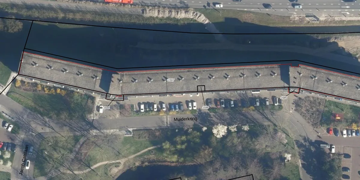 Het perceel waarop Muiderkring 34 staat heeft een oppervlakte van 3035 m². Dit is een zeer groot perceel. De perceeloppervlakte wordt geregistreerd door het Kadaster. Gedetailleerde informatie over de maten van dit perceel kunt u vinden in het rapport Kadastrale kaart met maatvoering van Muiderkring 34.