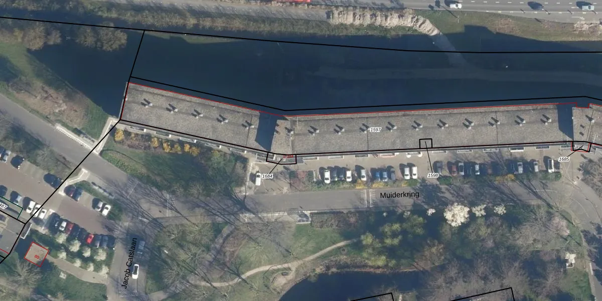 Muiderkring 37 is gelegen op kadastraal perceel LDN01R1597. Deze kadastrale aanduiding is uniek en wordt gebruikt door het Kadaster om eigendomsrechten en andere zakelijke rechten vast te leggen. Het perceel maakt onderdeel uit van de kadastrale gemeente Leiden.