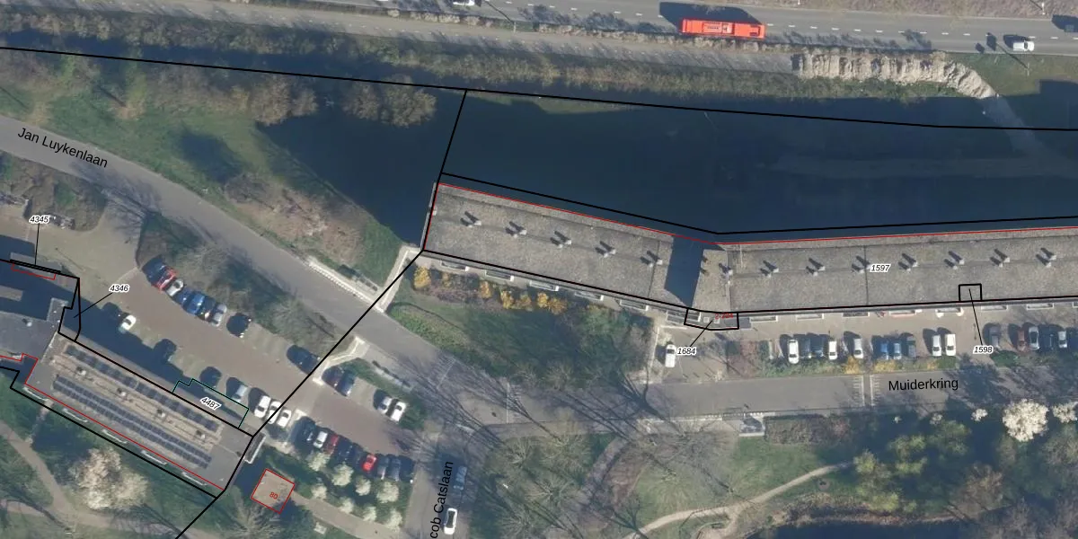 Het perceel waarop het adres ligt is LDN01-R-1597. De afkorting 'LDN01' staat voor kadastrale gemeente Leiden. Het perceel is met 3035 m² relatief groot. Het gemiddelde ligt in de kadastrale gemeente Leiden op 703,94 m². Het kleinste perceel in de kadastrale gemeente is 0 m² groot. De grootste perceeloppervlakte is 51,8 ha. Er zijn 176 adressen aanwezig op het perceel. De huidige grenzen van het perceel zijn digitaal in de Basisregistratie Kadaster (BRK) geregistreerd op 30-07-2012.