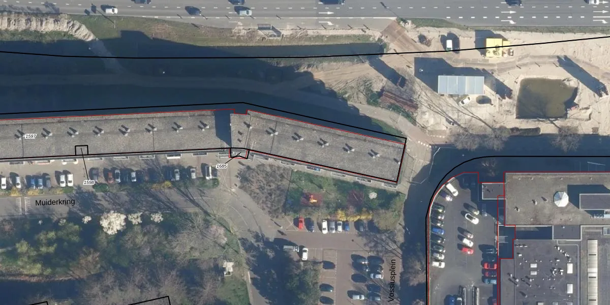 Het perceel waarop Muiderkring 54 staat heeft een oppervlakte van 3035 m². Dit is een zeer groot perceel. De perceeloppervlakte wordt geregistreerd door het Kadaster. Gedetailleerde informatie over de maten van dit perceel kunt u vinden in het rapport Kadastrale kaart met maatvoering van Muiderkring 54.