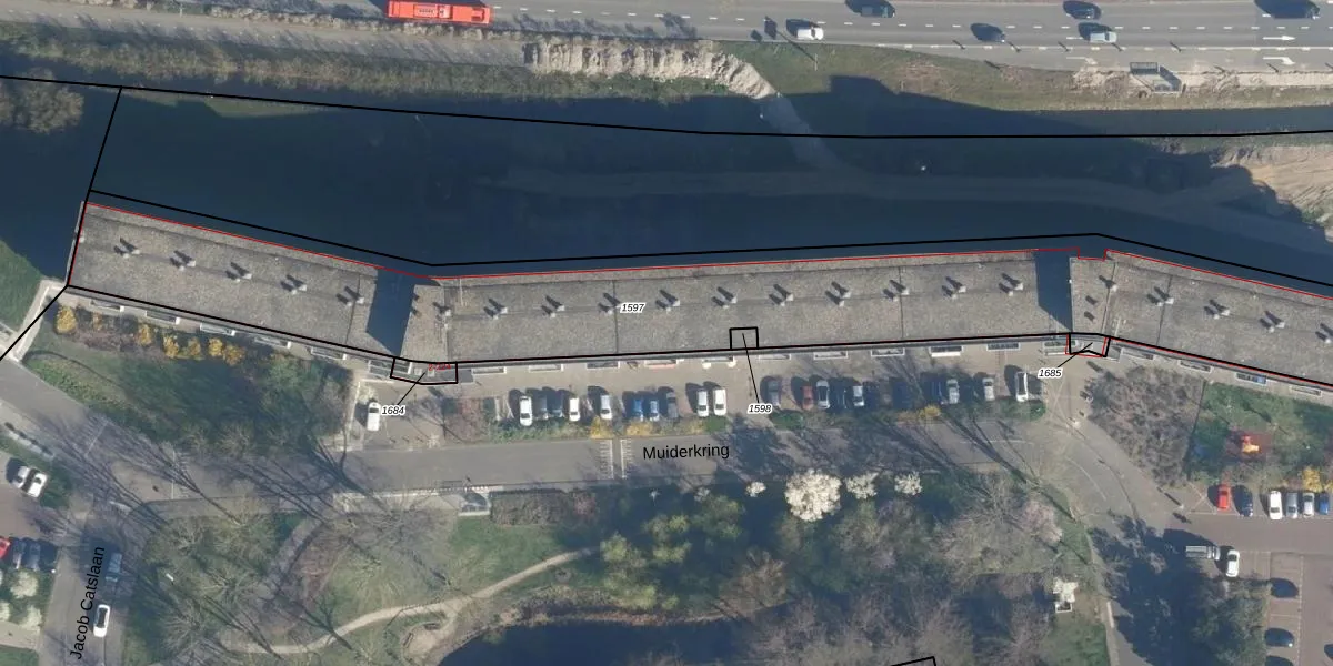 Het perceel waarop Muiderkring 64 staat heeft een oppervlakte van 3035 m². Dit is een zeer groot perceel. De perceeloppervlakte wordt geregistreerd door het Kadaster. Gedetailleerde informatie over de maten van dit perceel kunt u vinden in het rapport Kadastrale kaart met maatvoering van Muiderkring 64.