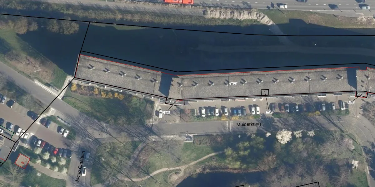 Muiderkring 67 is gelegen op kadastraal perceel LDN01R1597. Deze kadastrale aanduiding is uniek en wordt gebruikt door het Kadaster om eigendomsrechten en andere zakelijke rechten vast te leggen. Het perceel maakt onderdeel uit van de kadastrale gemeente Leiden.
