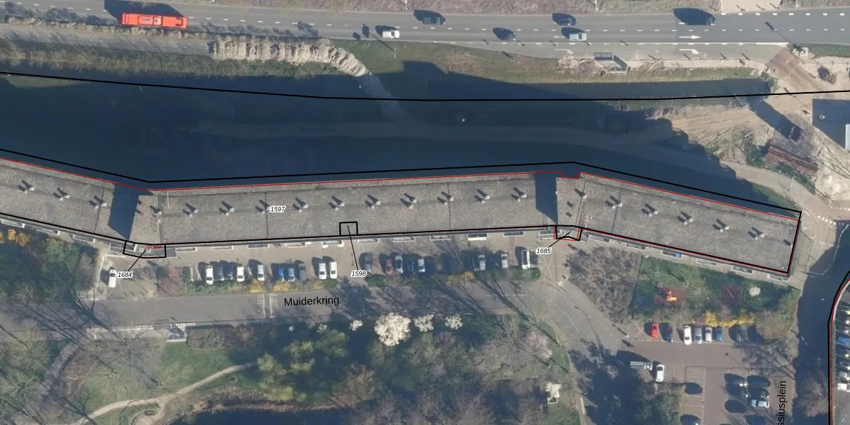 Muiderkring 91 is gelegen op kadastraal perceel LDN01R1597. Deze kadastrale aanduiding is uniek en wordt gebruikt door het Kadaster om eigendomsrechten en andere zakelijke rechten vast te leggen. Het perceel maakt onderdeel uit van de kadastrale gemeente Leiden.