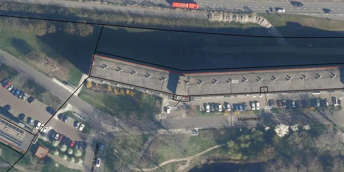 Het perceel waarop Muiderkring 98 staat heeft een oppervlakte van 3035 m². Dit is een zeer groot perceel. De perceeloppervlakte wordt geregistreerd door het Kadaster. Gedetailleerde informatie over de maten van dit perceel kunt u vinden in het rapport Kadastrale kaart met maatvoering van Muiderkring 98.