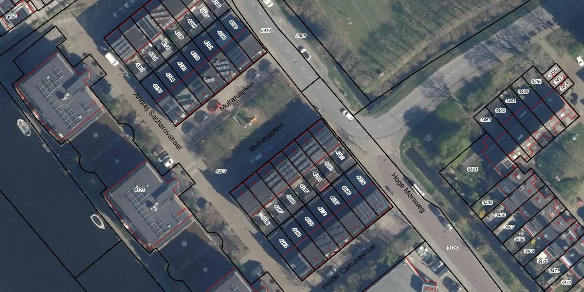 Multatuliplein 12 is gelegen op kadastraal perceel LDN01X4184. Deze kadastrale aanduiding is uniek en wordt gebruikt door het Kadaster om eigendomsrechten en andere zakelijke rechten vast te leggen. Het perceel maakt onderdeel uit van de kadastrale gemeente Leiden.
