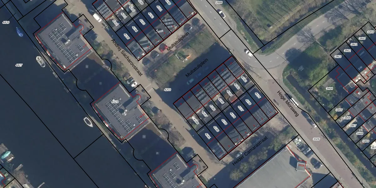 Multatuliplein 9 is gelegen op kadastraal perceel LDN01X4187. Deze kadastrale aanduiding is uniek en wordt gebruikt door het Kadaster om eigendomsrechten en andere zakelijke rechten vast te leggen. Het perceel maakt onderdeel uit van de kadastrale gemeente Leiden.