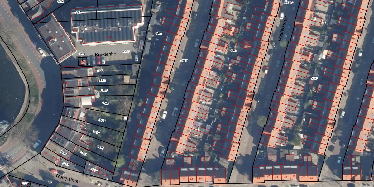 Het adres is gelegen op perceel 4422 in de sectie K en de kadastrale gemeente Leiden. De kadastrale aanduiding is aldus LDN01-K-4422. De oppervlakte van het perceel is 4878 m². Dat is groter dan gemiddeld in Leiden, waar de gemiddelde perceeloppervlakte op 703,94 m² ligt. De grootste perceeloppervlakte in de kadastrale gemeente is 51,8 ha. De kleinste oppervlakte bedraagt 0 m². Op het perceel zijn 54 adressen aanwezig. De huidige grenzen van het perceel zijn digitaal in de Basisregistratie Kadaster (BRK) geregistreerd op 22-08-2003.