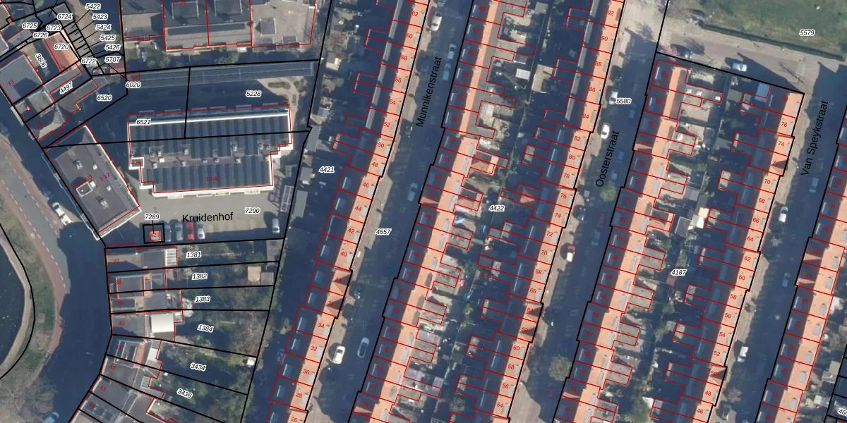 Het perceel waarop Munnikenstraat 49 staat heeft een oppervlakte van 4878 m². Dit is een zeer groot perceel. De perceeloppervlakte wordt geregistreerd door het Kadaster. Gedetailleerde informatie over de maten van dit perceel kunt u vinden in het rapport Kadastrale kaart met maatvoering van Munnikenstraat 49.