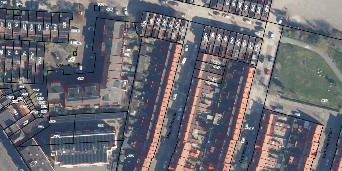 Het perceel waarop Munnikenstraat 64 staat heeft een oppervlakte van 2792 m². Dit is een zeer groot perceel. De perceeloppervlakte wordt geregistreerd door het Kadaster. Gedetailleerde informatie over de maten van dit perceel kunt u vinden in het rapport Kadastrale kaart met maatvoering van Munnikenstraat 64.