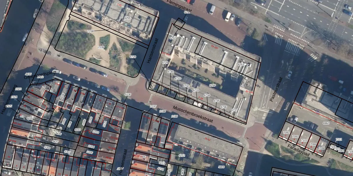 Het perceel waarop Musschenbroekstraat 6 staat heeft een oppervlakte van 1597 m². Dit is een zeer groot perceel. De perceeloppervlakte wordt geregistreerd door het Kadaster. Gedetailleerde informatie over de maten van dit perceel kunt u vinden in het rapport Kadastrale kaart met maatvoering van Musschenbroekstraat 6.