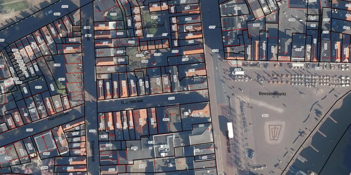 Narmstraat 1-D is gelegen op kadastraal perceel LDN01B2288. Deze kadastrale aanduiding is uniek en wordt gebruikt door het Kadaster om eigendomsrechten en andere zakelijke rechten vast te leggen. Het perceel maakt onderdeel uit van de kadastrale gemeente Leiden.