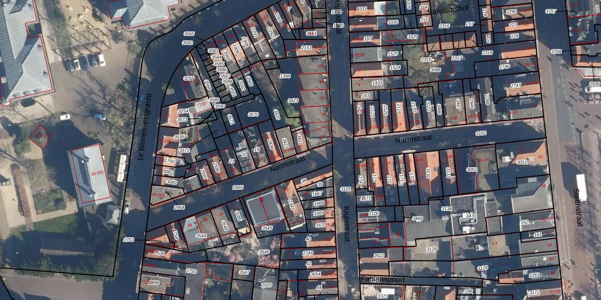 Narmstraat 21 is gelegen op kadastraal perceel LDN01B3422. Deze kadastrale aanduiding is uniek en wordt gebruikt door het Kadaster om eigendomsrechten en andere zakelijke rechten vast te leggen. Het perceel maakt onderdeel uit van de kadastrale gemeente Leiden.