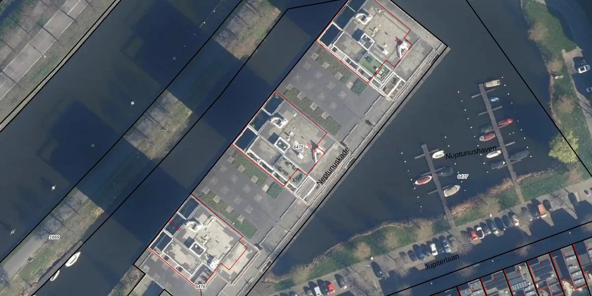 Neptunuskade 113 is gelegen op kadastraal perceel LDN01T6475. Deze kadastrale aanduiding is uniek en wordt gebruikt door het Kadaster om eigendomsrechten en andere zakelijke rechten vast te leggen. Het perceel maakt onderdeel uit van de kadastrale gemeente Leiden.