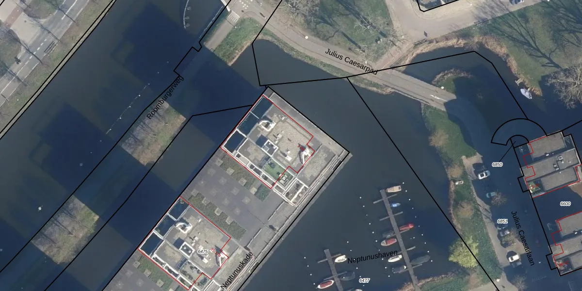 Neptunuskade 15 is gelegen op kadastraal perceel LDN01T6475. Deze kadastrale aanduiding is uniek en wordt gebruikt door het Kadaster om eigendomsrechten en andere zakelijke rechten vast te leggen. Het perceel maakt onderdeel uit van de kadastrale gemeente Leiden.