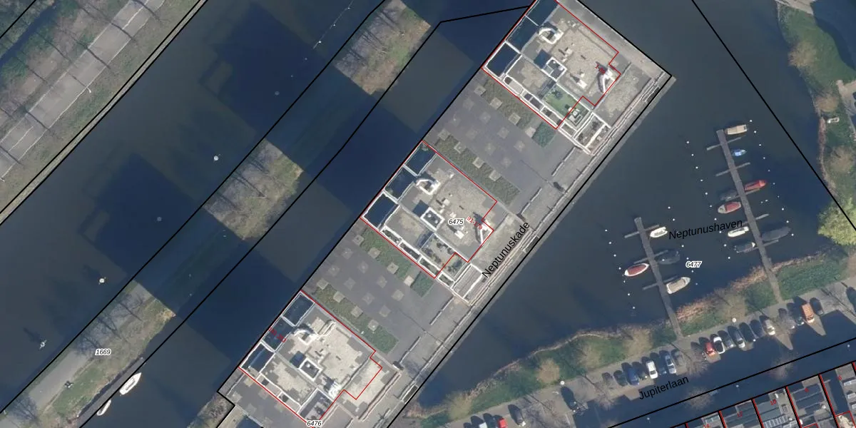 Het perceel waarop Neptunuskade 151 staat heeft een oppervlakte van 4726 m². Dit is een zeer groot perceel. De perceeloppervlakte wordt geregistreerd door het Kadaster. Gedetailleerde informatie over de maten van dit perceel kunt u vinden in het rapport Kadastrale kaart met maatvoering van Neptunuskade 151.
