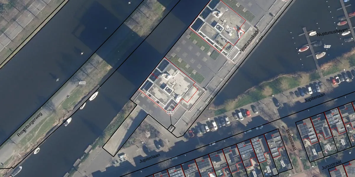 Neptunuskade 201 is gelegen op kadastraal perceel LDN01T6475. Deze kadastrale aanduiding is uniek en wordt gebruikt door het Kadaster om eigendomsrechten en andere zakelijke rechten vast te leggen. Het perceel maakt onderdeel uit van de kadastrale gemeente Leiden.