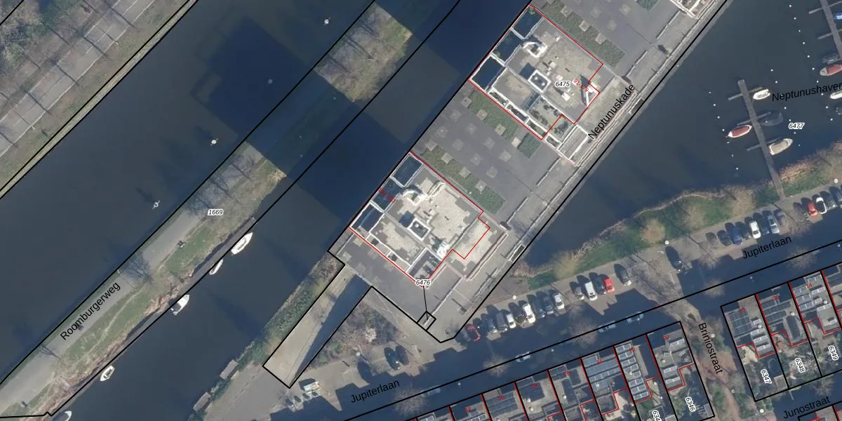 Neptunuskade 233 is gelegen op kadastraal perceel LDN01T6475. Deze kadastrale aanduiding is uniek en wordt gebruikt door het Kadaster om eigendomsrechten en andere zakelijke rechten vast te leggen. Het perceel maakt onderdeel uit van de kadastrale gemeente Leiden.