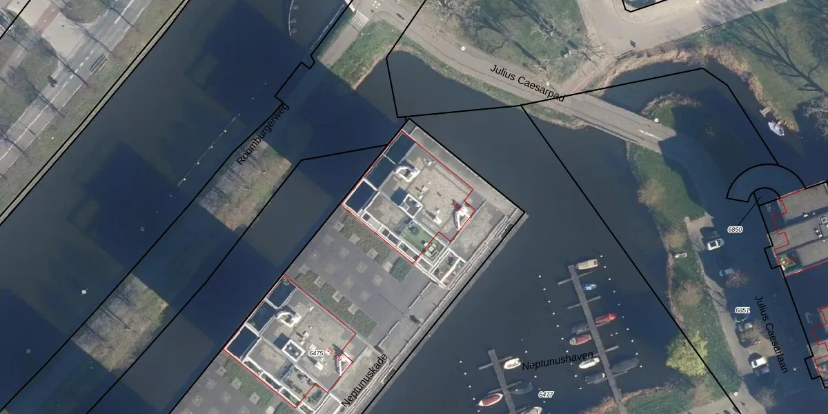 Neptunuskade 41 is gelegen op kadastraal perceel LDN01T6475. Deze kadastrale aanduiding is uniek en wordt gebruikt door het Kadaster om eigendomsrechten en andere zakelijke rechten vast te leggen. Het perceel maakt onderdeel uit van de kadastrale gemeente Leiden.
