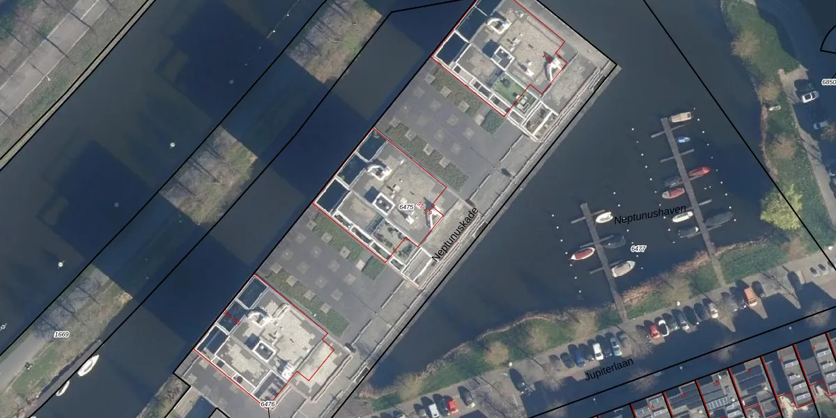 Neptunuskade 95 is gelegen op kadastraal perceel LDN01T6475. Deze kadastrale aanduiding is uniek en wordt gebruikt door het Kadaster om eigendomsrechten en andere zakelijke rechten vast te leggen. Het perceel maakt onderdeel uit van de kadastrale gemeente Leiden.