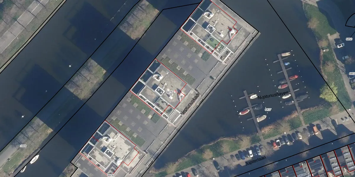 Neptunuskade 97 is gelegen op kadastraal perceel LDN01T6475. Deze kadastrale aanduiding is uniek en wordt gebruikt door het Kadaster om eigendomsrechten en andere zakelijke rechten vast te leggen. Het perceel maakt onderdeel uit van de kadastrale gemeente Leiden.